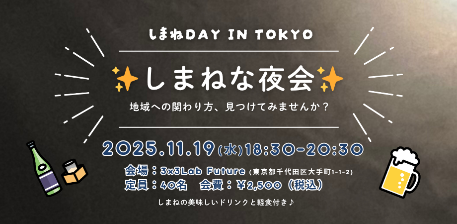 島根が好き!島根が気になる!そんなシマネなあなたのための特別な夜、、。しまねDAY in TOKYO 『しまねな夜会』~地域への関わり方、見つけてみませんか?~を開催します!